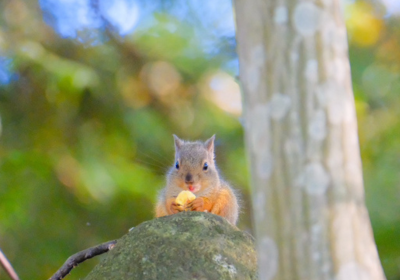 ニホンリスは日本の固有種であり、都市に自然を取り戻す象徴。昼行性で子どもたちの観察学習に最適。